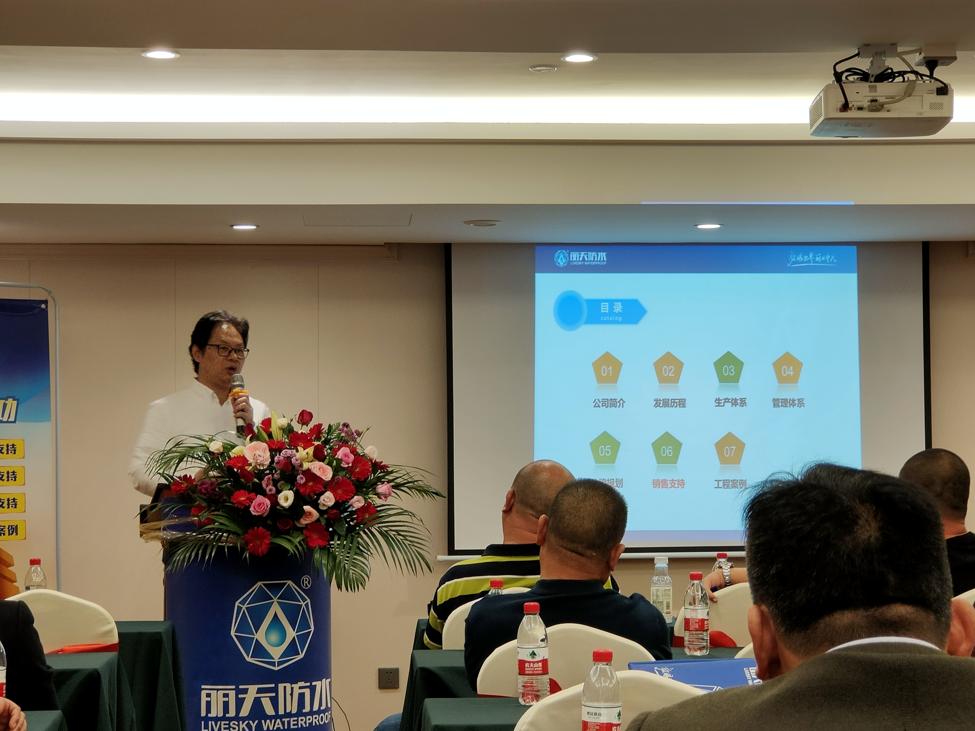 随後麗天防水(shuǐ)應用技(jì)術(shù)部工(gōng)程師(shī)對行業(yè)的發展方向與大家做了下(xià)分享,環保、耐用、客戶滿意将成為(wèi)主旋律,麗天防水(shuǐ)推出的“藍天100防水(shuǐ)系統”将這三個(gè)主要關注點融入了系統,以100%環保、100%滿意服務宗旨、耐用100年(nián)為(wèi)質量目标,推出了真正與建築同壽命的防水(shuǐ)系統,大幅度的提升工(gōng)程品質,讓您防水(shuǐ)無憂。
