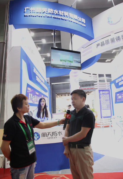 展會(huì)期間,麗天公司董事(shì)長(cháng)陳傑先生(shēng)、總經理汪寶坤先生(shēng)親臨現場,為(wèi)現場來賓逐點解答關于防水(shuǐ)工(gōng)程的技(jì)術(shù)要領和疑點難點,并介紹了先進的防水(shuǐ)思路(lù)和工(gōng)藝方案。總經理汪寶坤先生(shēng)還(hái)接受來自(zì)廣東電(diàn)視台《智赢天下(xià)》欄目組獨家專訪,向其介紹了麗天公司發展理念,始終堅持“不生(shēng)産一(yī)平米不合格産品”的原則。