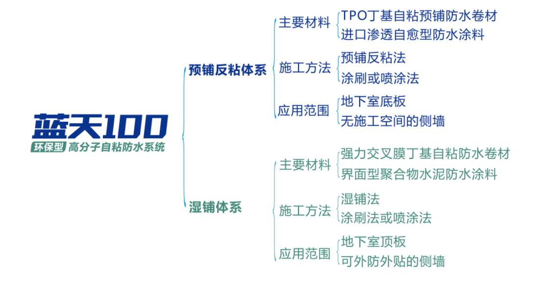“藍天100”環保耐久型高(gāo)分子自(zì)粘防水(shuǐ)系統